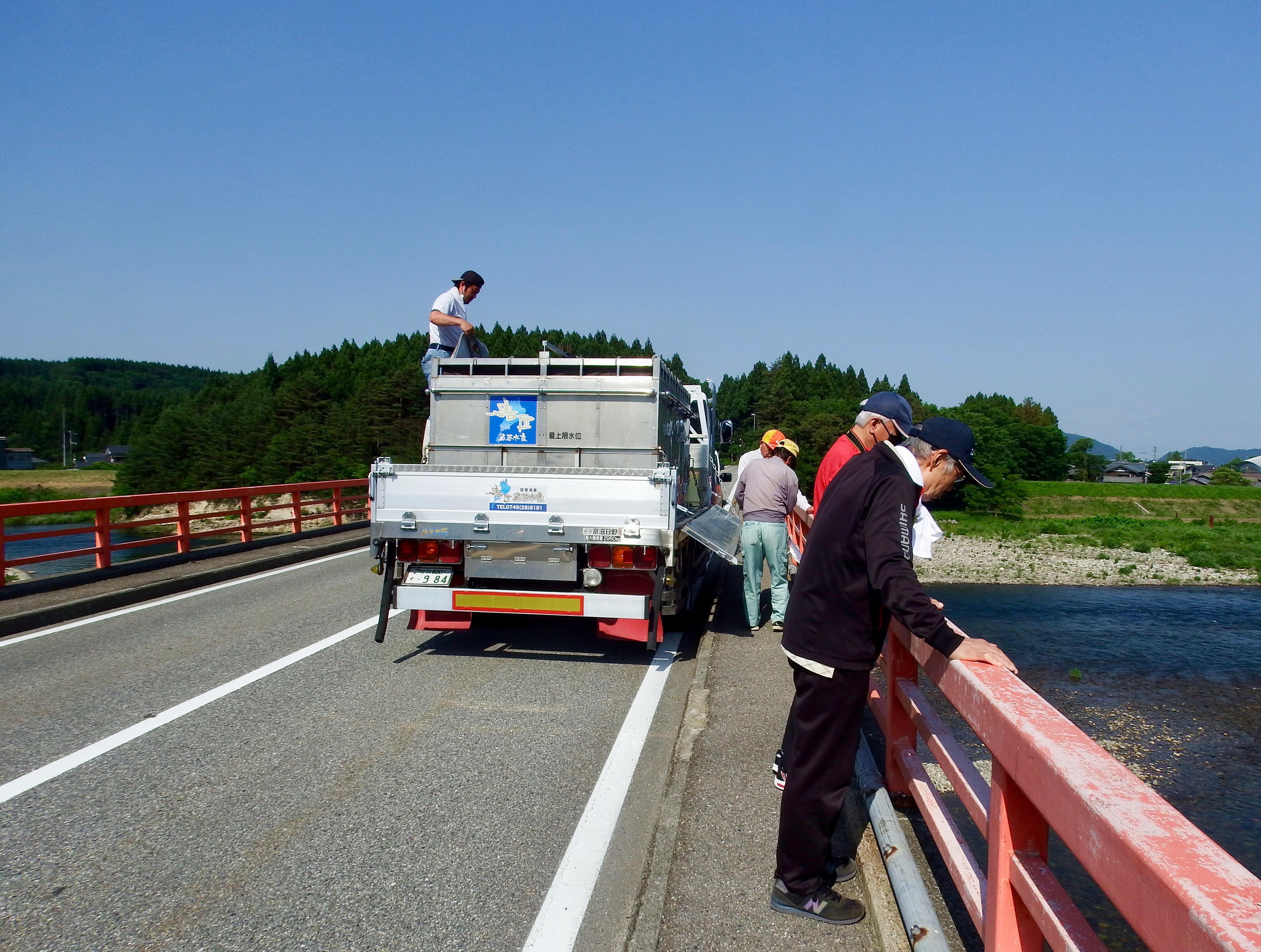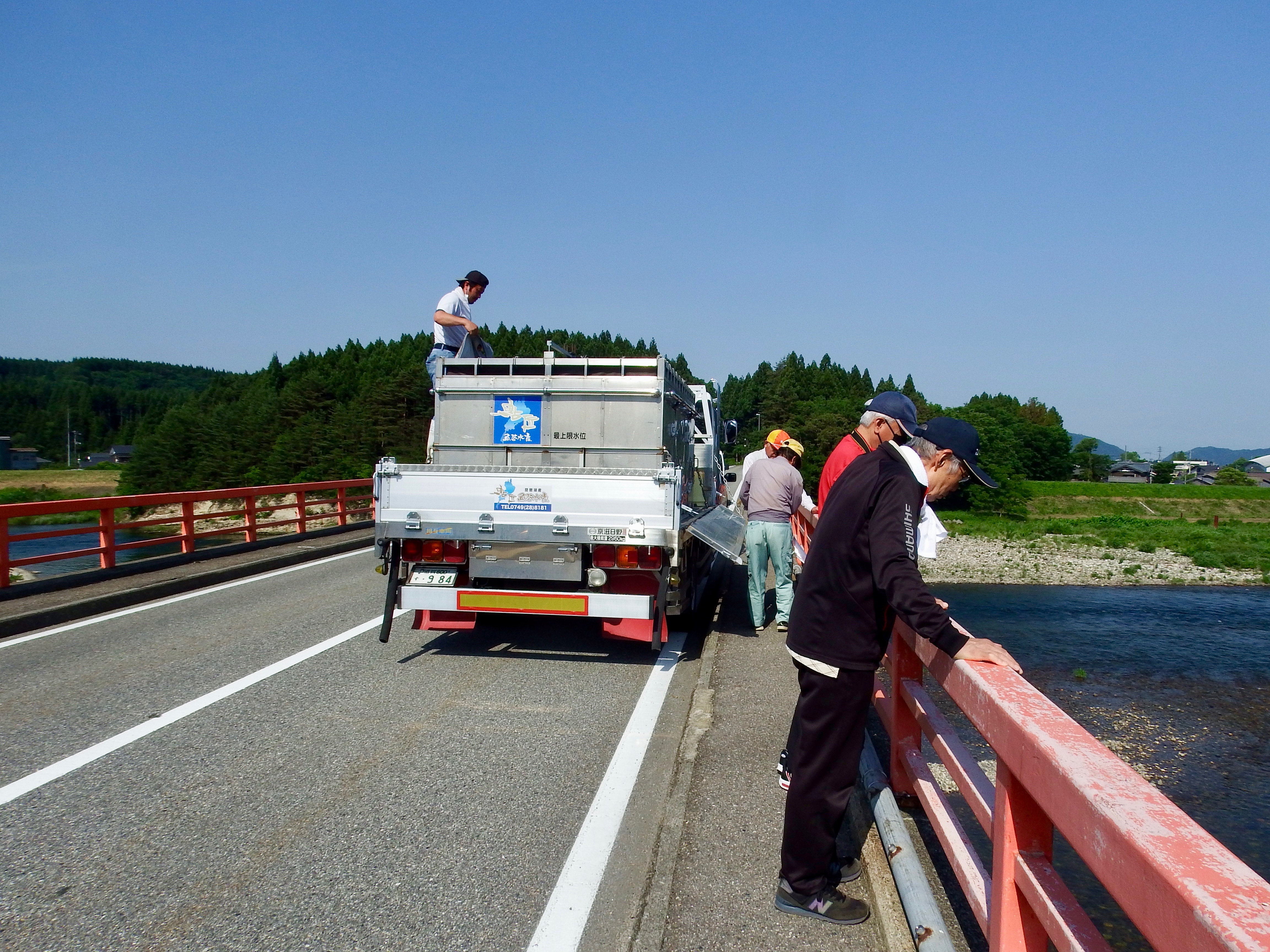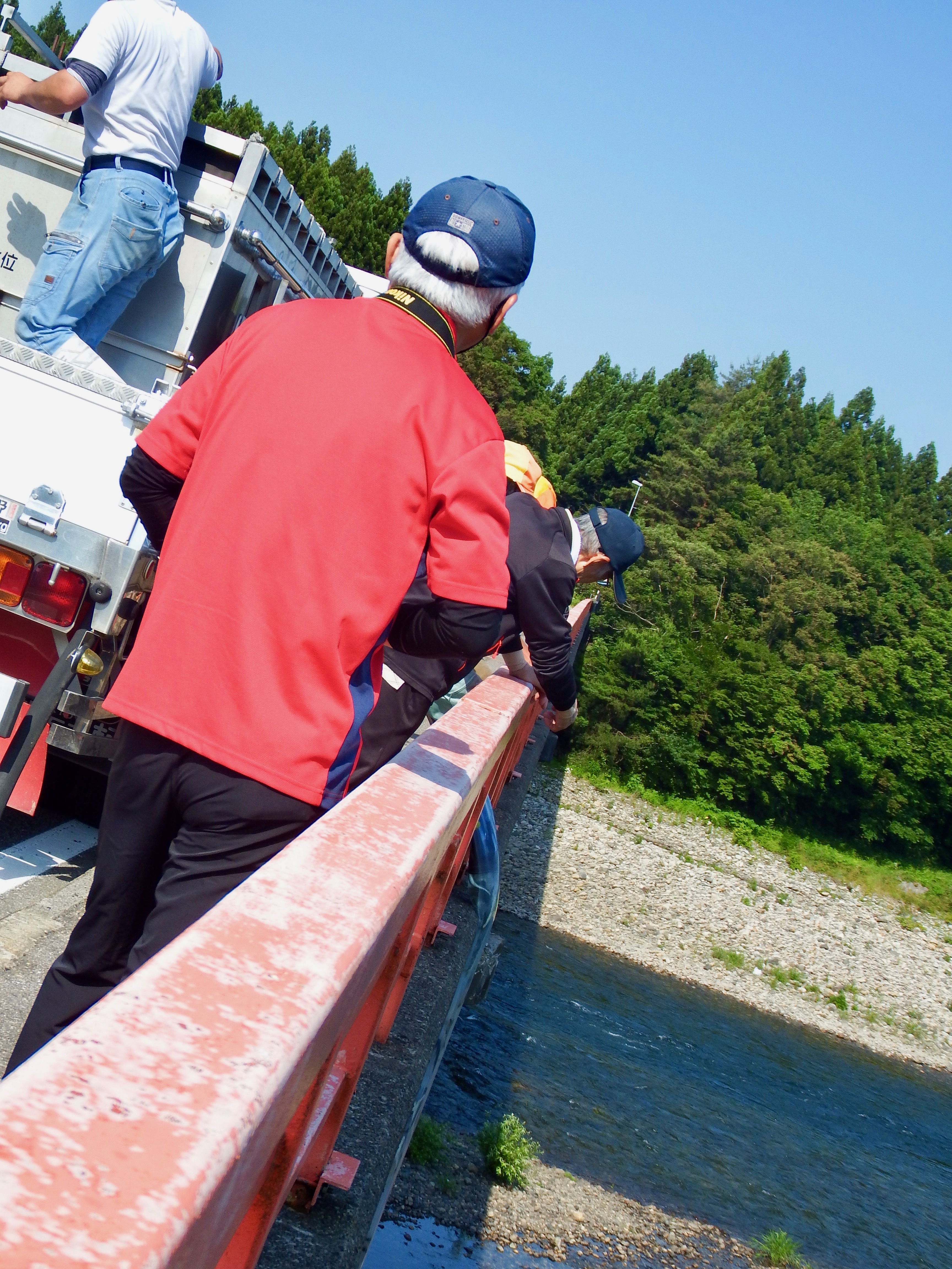 お昼に車に戻ったD さんが引き舟から囮缶に鮎を移して数えたら30匹釣っていたと話す。