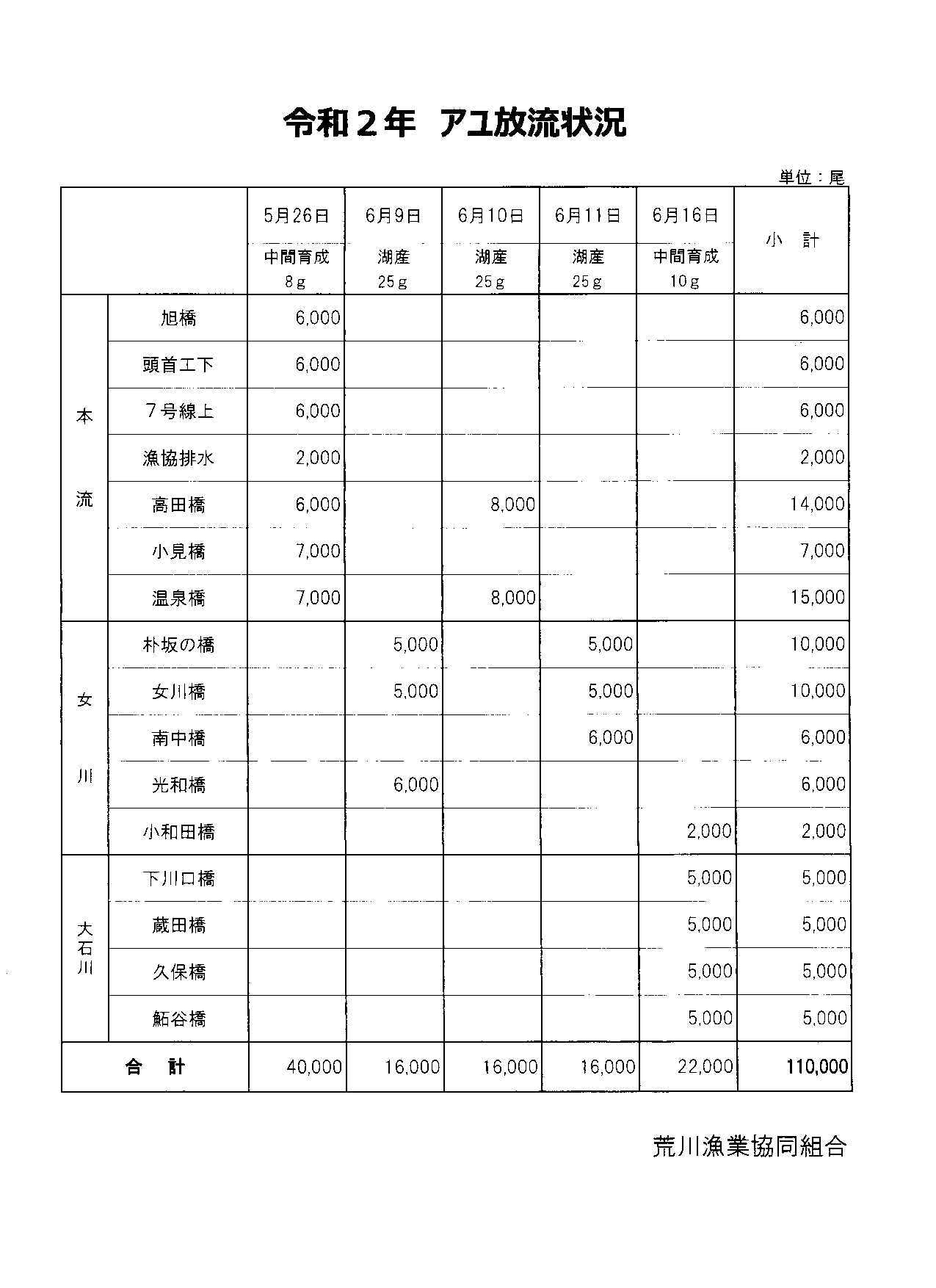 北越後の荒川にも鮎のシーズンがやって来ました。コロナに振り回されて、どうなる事かと懸念していましたが県境を越えての往来ができる様になったので一安心。今年の解禁日は平日(7月1日)なので静かな解禁日を迎える事でしょう。下記に今年の放流数が記載されていますが、昨年と比較すれば女川に放流した鮎の殆どが湖産の25gの鮎です。大きい湖産鮎の効果か昨年の女川では解禁日に100匹を釣った釣師もあって好評でした。荒川漁協では昨年は湖産を13.000尾の放流でしたが、今年は32.000尾と倍以上の放流です。解禁当初から楽しい釣りができるでしょう。荒川の温泉橋と高田橋にも放流されましたので初期の荒川では放流場所近くがオススメです。天然遡上は昨年ほど多くはない様ですが、積雪が少なかったので水温が平年よりやや高くて、早い時期から遡上する鮎もいました。今年は雪代水が出なかった様な・・。夏の水不足と垢腐れが気になるところですが良いシーズンになる事を願いながら、親父の日記を書いてゆきたいと思います。今年も閲覧宜しくお願い致します。