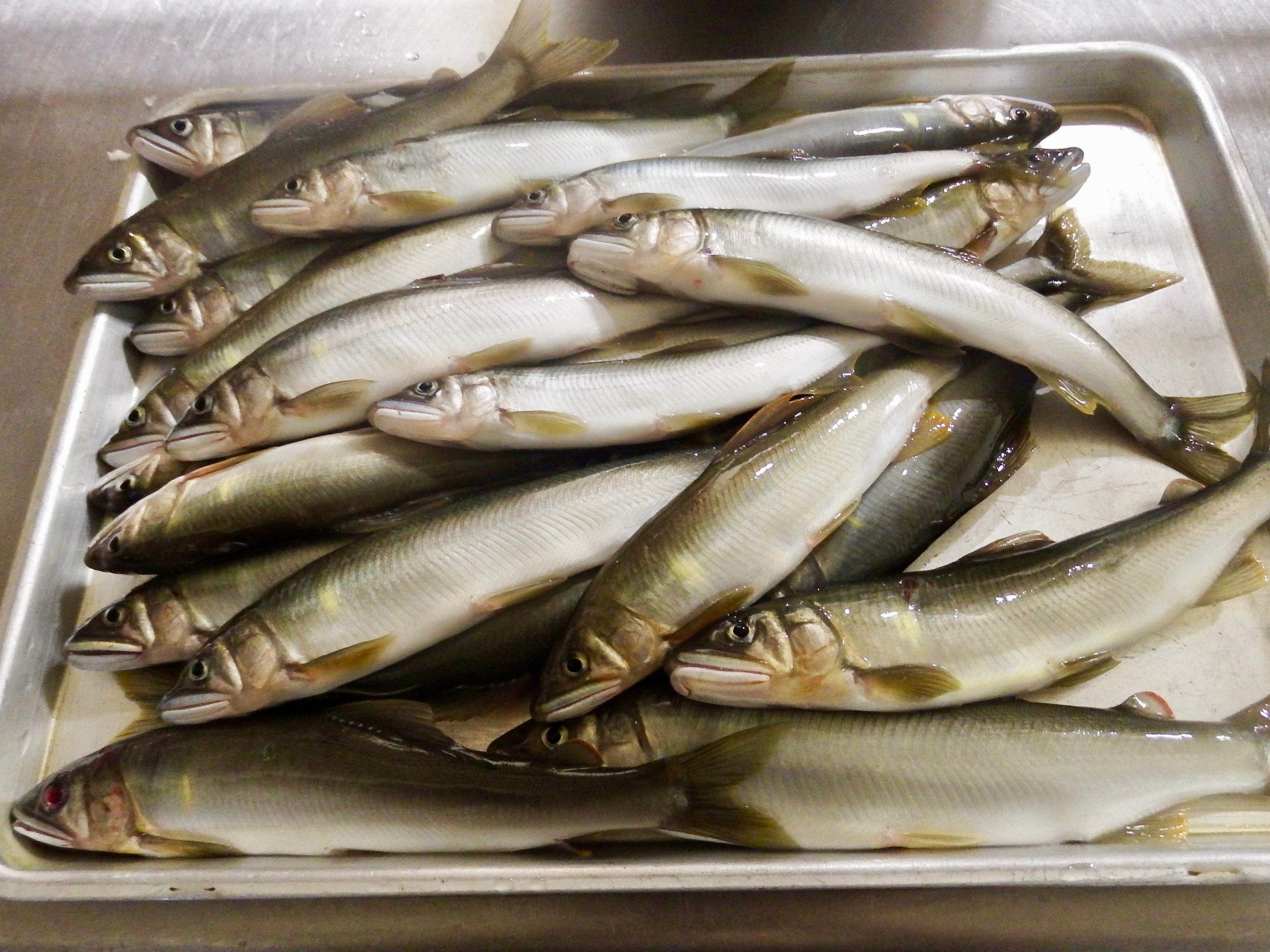 周りの釣り人の平均釣果は20〜30匹くらいだろうか。そんな話をTさんと交わしてから自宅に戻った。夕方、DさんとA さんが帰って来た。「真空パックしてあげるから、鮎を締めて」と二人に伝える。二人の釣果はDさん45匹、Aさん20匹弱程であった。